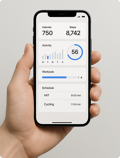 Monitor your workouts, nutrition, and progress all in one place with our fitness app.